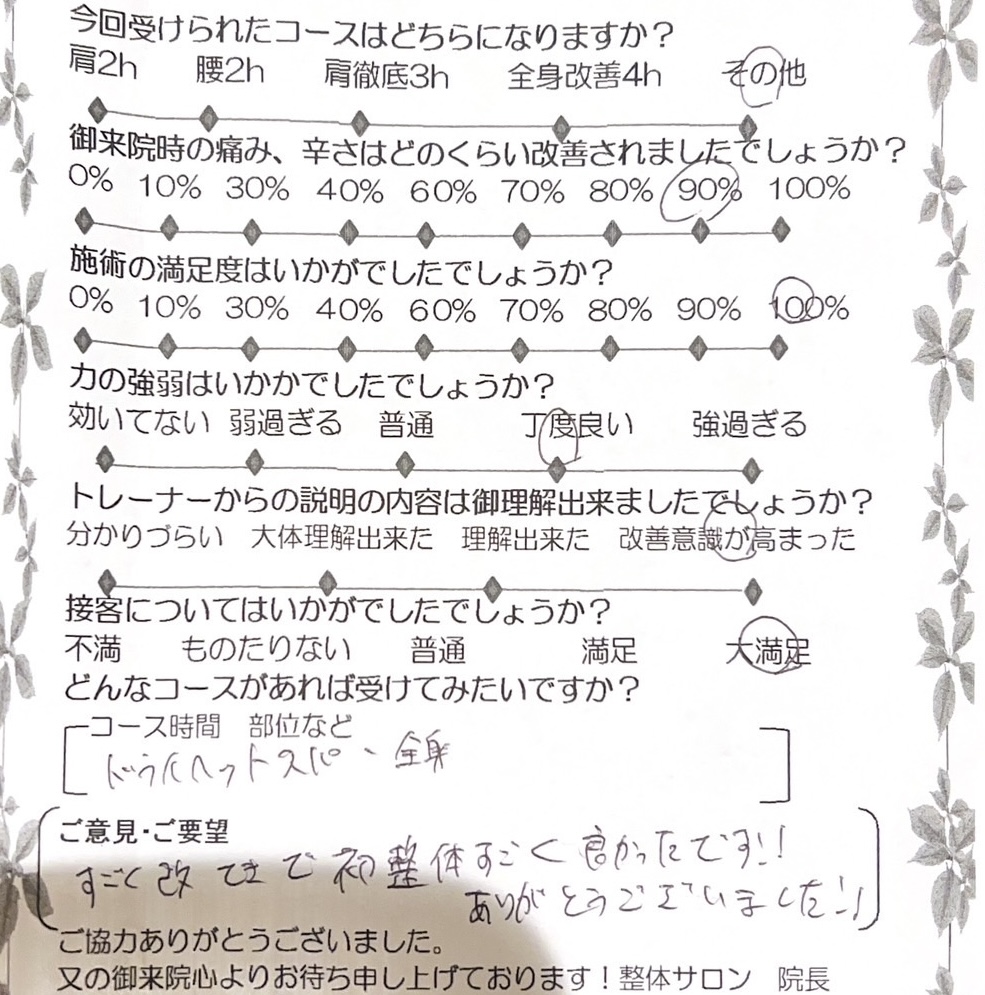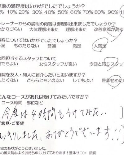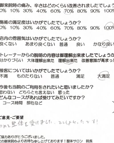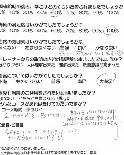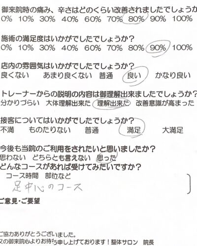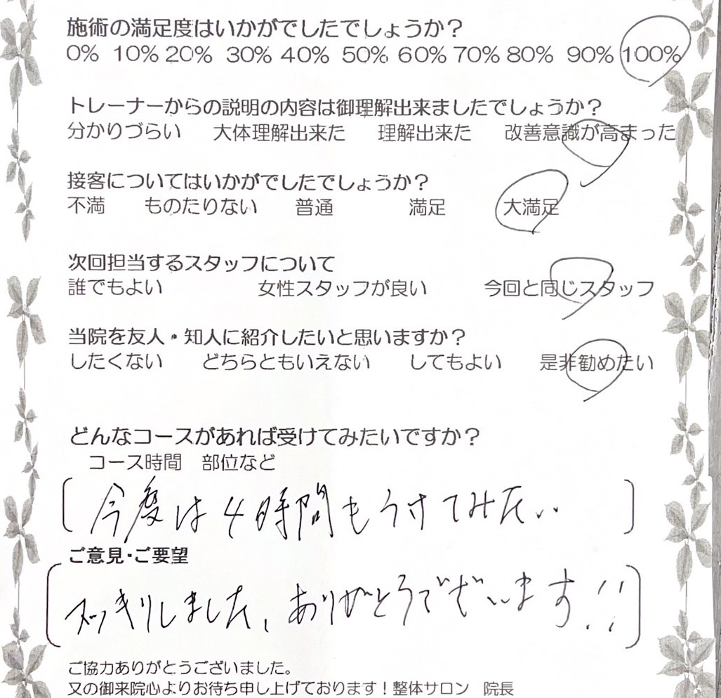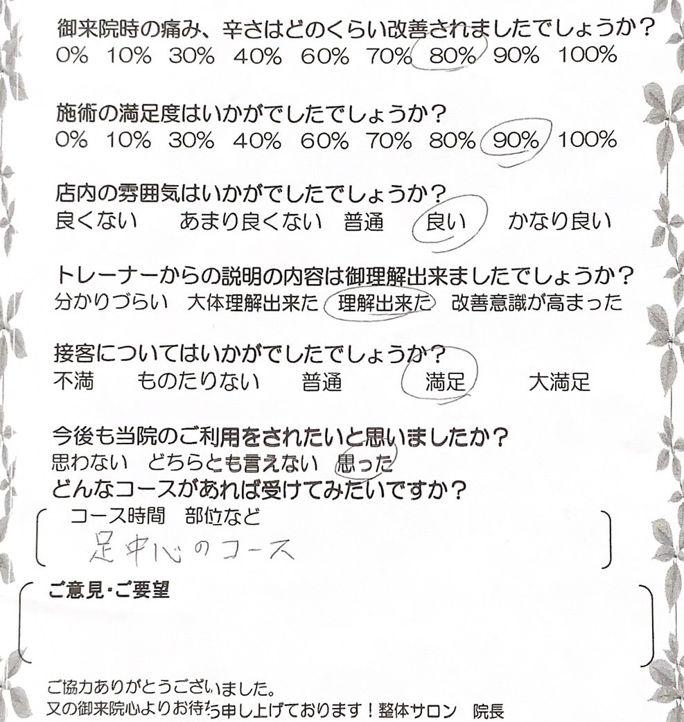 お客様の声 | 札幌中央区の駅近の整体 あしから美人