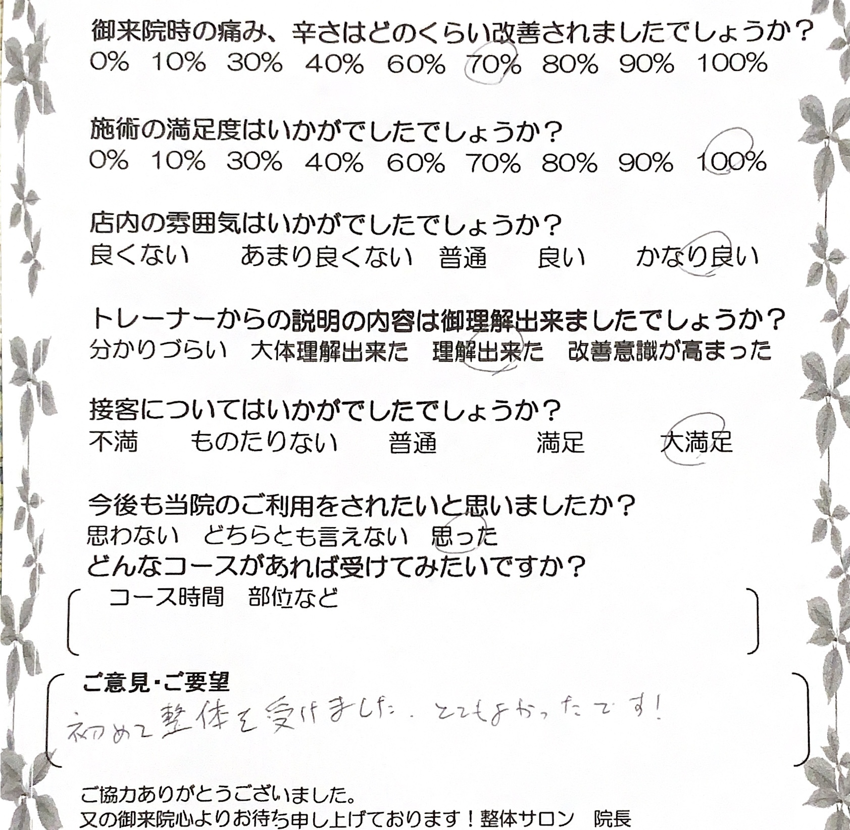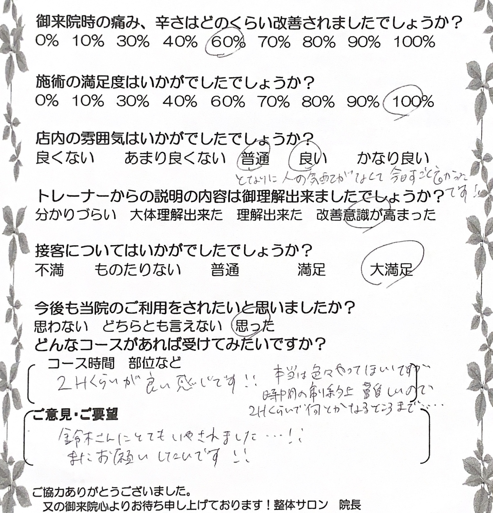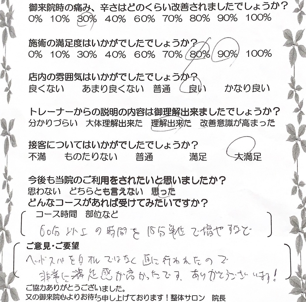 お客様の声 | 札幌中央区の駅近の整体 あしから美人